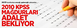 Gazetemizin, 2010 Kamu Personel Seçme Sınavı (KPSS) sorularının FETÖ’cü hainler tarafından çalınarak on binlerce kişinin hakkının gasp edildiğini ortaya çıkarmasının ardından hukuk mücadelesi başlatan mağdurların adalet bekleyişi 6. yılına girdi. FETÖ’cüler tarafından hakları gasp edilen 2010 KPSS Emeği Çalınanlar Topluluğu Başkanı Murat Göçer, 6 senedir büyük bir hukuk mücadelesinin içine olduklarını belirterek, çaldıkları sorularla devlet kurumlarına yerleşenlerin, 15 Temmuz akşamı milletin iradesine darbe yapmaya çalıştığını hatırlatarak, FETÖ’cü hainler tarafından hile ile işgal edilen, devlet kadrolarının gerçek sahiplerine verilmesi gerektiğini kaydetti.