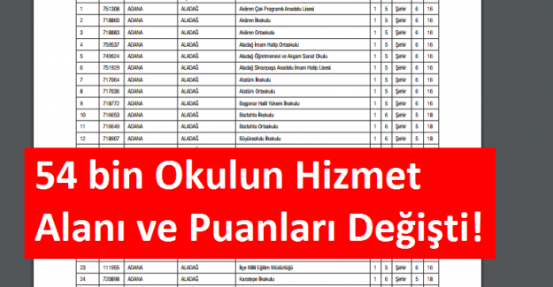 54 bin Okulun Hizmet Alanı ve Puanları Değişti!
