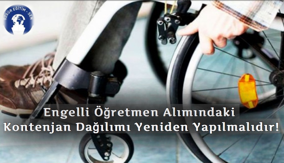 Bu açıdan hem kültür ve inanç değerlerimizin hem mevcut yasal yükümlülüklerin zorunlu kıldığı engellilerin hak ve onurlarının korunması ve gözetilmesi durumu aynı zamanda gelişmiş bir toplum olmanın gereğidir ve göstergesidir. Özgür Eğitim-Sen olarak hayatımızın ayrılmaz bir parçası olan engellilerin haklı taleplerinin gözardı edilmesine rıza gösterilmesini kabul etmiyoruz. Hakları açıkça tespit ve tayin edilmiş engelli öğretmenlerin her hangi bir mağduriyet yaşamamaları için MEB tarafından açıklanan kontenjan dağılımının yapılan başvurulara göre düzenlenmesinde zaruret vardır. Bu hem MEB’in sorumluluğu hem de aklın ve vicdanın gereğidir.