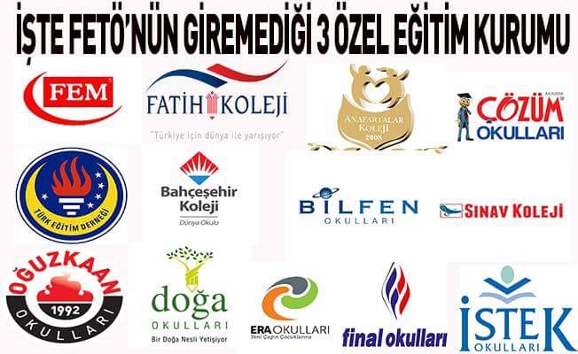 Bu okullardan örneğin Ted Kolejinde çalışan 5000 kişi de dahil tek soruşturma geçirmemiş . Bilfen Eğitim kurumları ve Oğuzkağan eğitim kurumları franchise vermemiş . Sonuç olarak bu 3 okul Fetö’nün giremediği okullar olarak kayıtlara girmiş .