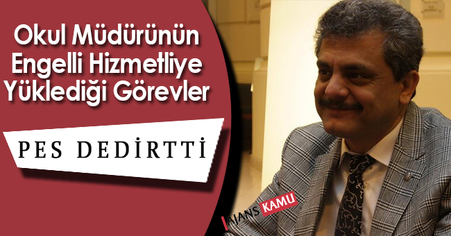 Fiziksel engelli bir hizmetli arkadaşımıza okul müdürünün yüklediği görevler. İnşallah bu okul müdürümüzde bir gün engelli olur da empati yapmayı becerir.