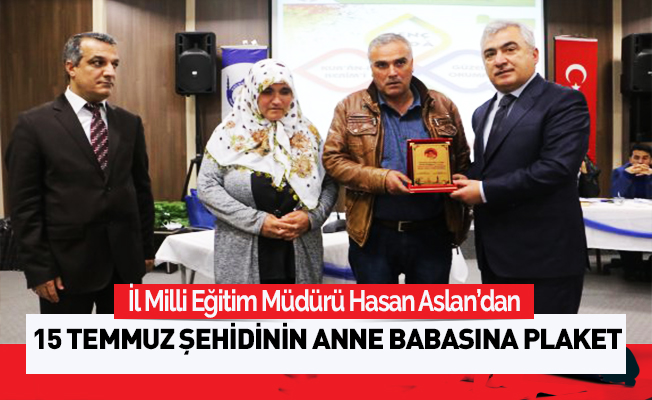 Konuşmaların ardından İl Milli Eğitim Müdürümüz Aslan tarafından Şehit Halit Gülser’in anne ve babasına günün anısına plaket takdim edildi.