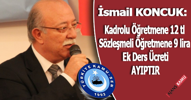 KONCUK; ‘Kadrolu öğretmenler 11.84 TL ek ders ücreti alırken sözleşmeliler 9.77 TL ek ders ücreti alacak. Bu ayıptır’ dedi.