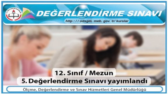 Millî Eğitim Bakanlığı Ölçme, Değerlendirme ve Sınav Hizmetleri Genel Müdürlüğünce,  Haziran ayında gerçekleştirilecek LYS öncesi,  12.sınıf ve mezun öğrencilerin üniversite hazırlık sürecinde genel başarı düzeylerini ölçmek, sınav kaygılarını düşürmek ve sınav pratiği oluşturmak amacıyla hazırlanan 5. değerlendirme sınavı bugün itibarıyla yayımlandı.