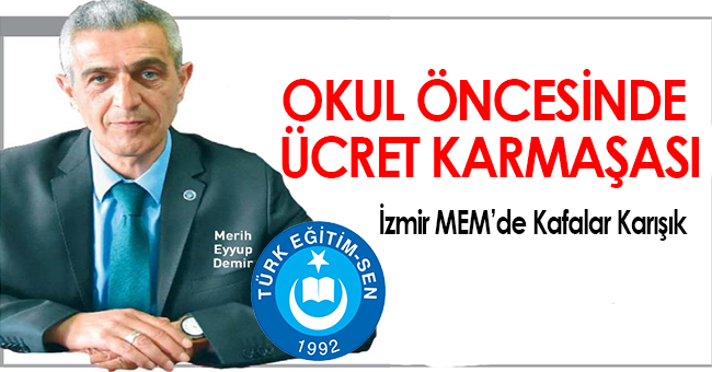 Demir, bu sorunun pilot il projesinin sonlandırılmasından kaynaklandığını belirtti. 7’DEOkul öncesi eğitimde ücret karmaşası Türk Eğitim- Sen İzmir ı No’lu Şube Başkanı Merih Eyyup Demir, İzmir’de okul öncesi eğitimde ücret karmaşası yaşandığını, bunun nedeninin, Milli Eğitim Bakanlığı’nin bu yıl uygulamayı planladığı ücretsiz ve zorunlu okul öncesi eğitimi pilot il projesinin sonlandırılmasından kaynaklandığını belirtti.