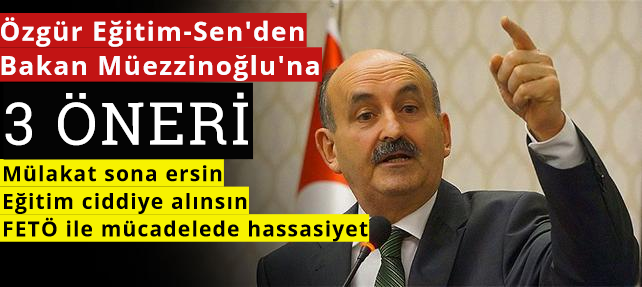 Sevinçer toplantıda Bakan Müezzinoğlu’na Özgür Eğitim-Sen’in gündemdeki üç önemli konu ile ilgili görüşlerini iletti.