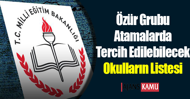 ÖZÜR GRUBU ATAMALARI TERCİH EDİLEBİLECEK OKUL LİSTESİ İÇİN TIKLAYINIZ (Liste birazdan açıklanacak ve bağlantı aktif hale gelecek, sayfayı periyodik aralıklarla yenileyiniz)