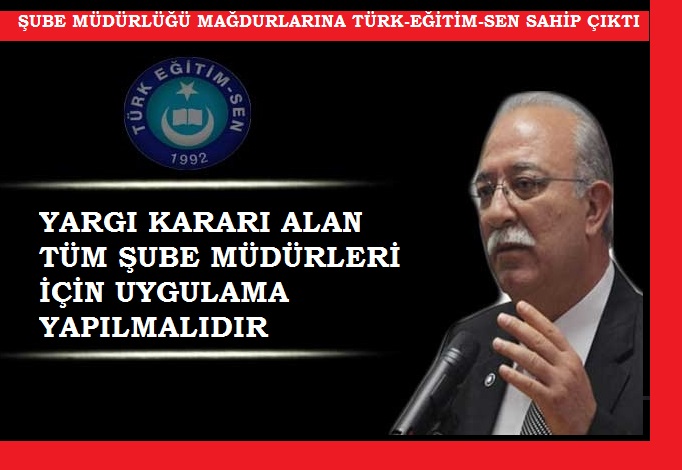 Türk Eğitim Sen olarak, açtıkları davaları kazanan adayların tümüne yukarıda belirtilen tarihlerde şube müdürlüğü atamasında tercih hakkı verilmesi hususunda MEB’e talepte bulunduk.